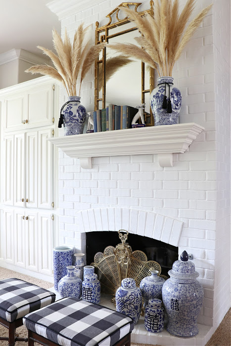 Last year I used this pampas grass on my Dining Room table, but this year I switched it to the mantle. I love the grand statement it makes!