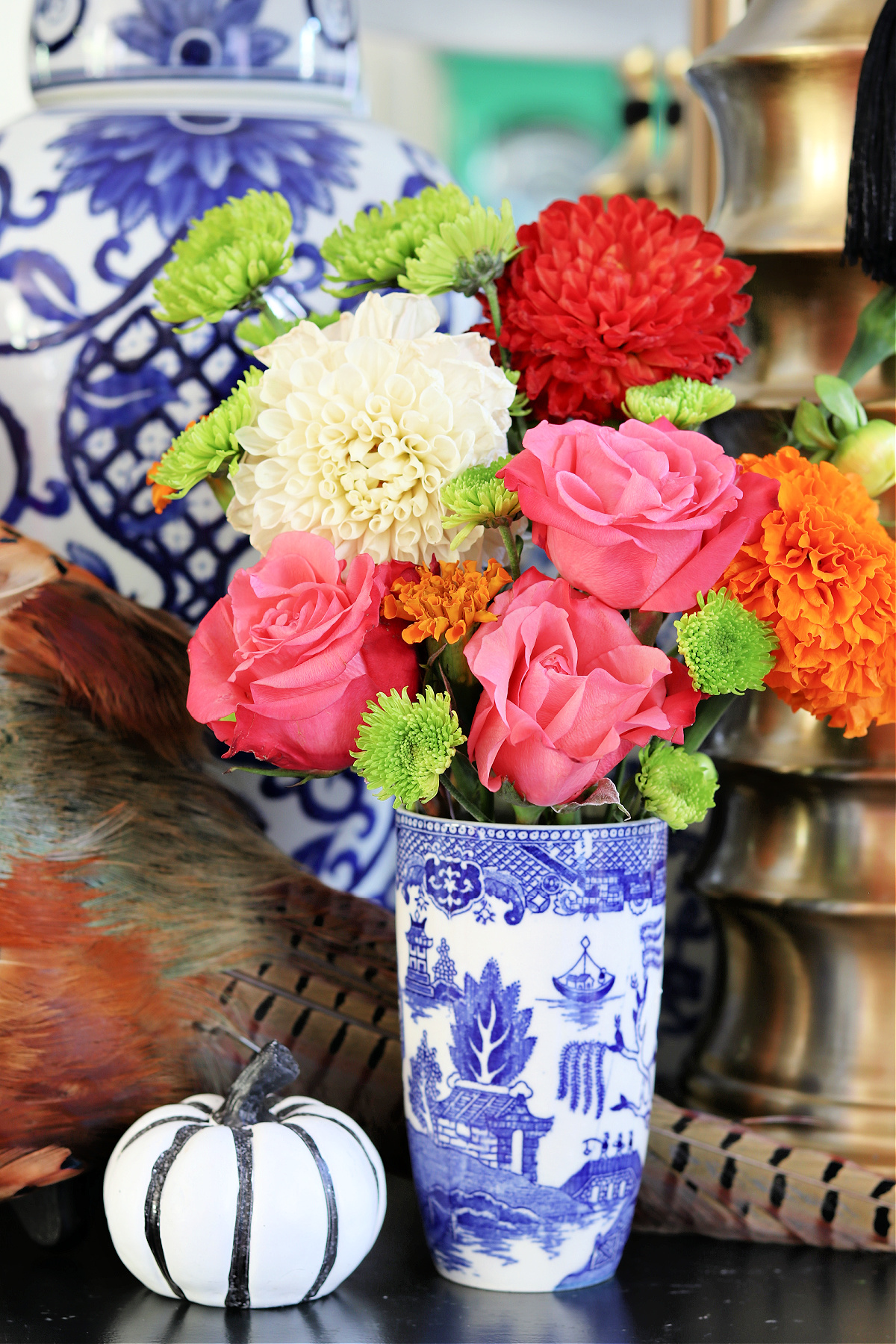 I went in search of flowers for a few arrangements and was looking for some soft colors, but Trader Joes had some gorgeous dahlias in a variety of colors that I couldn't resist, so my florals are adding a punch of color!