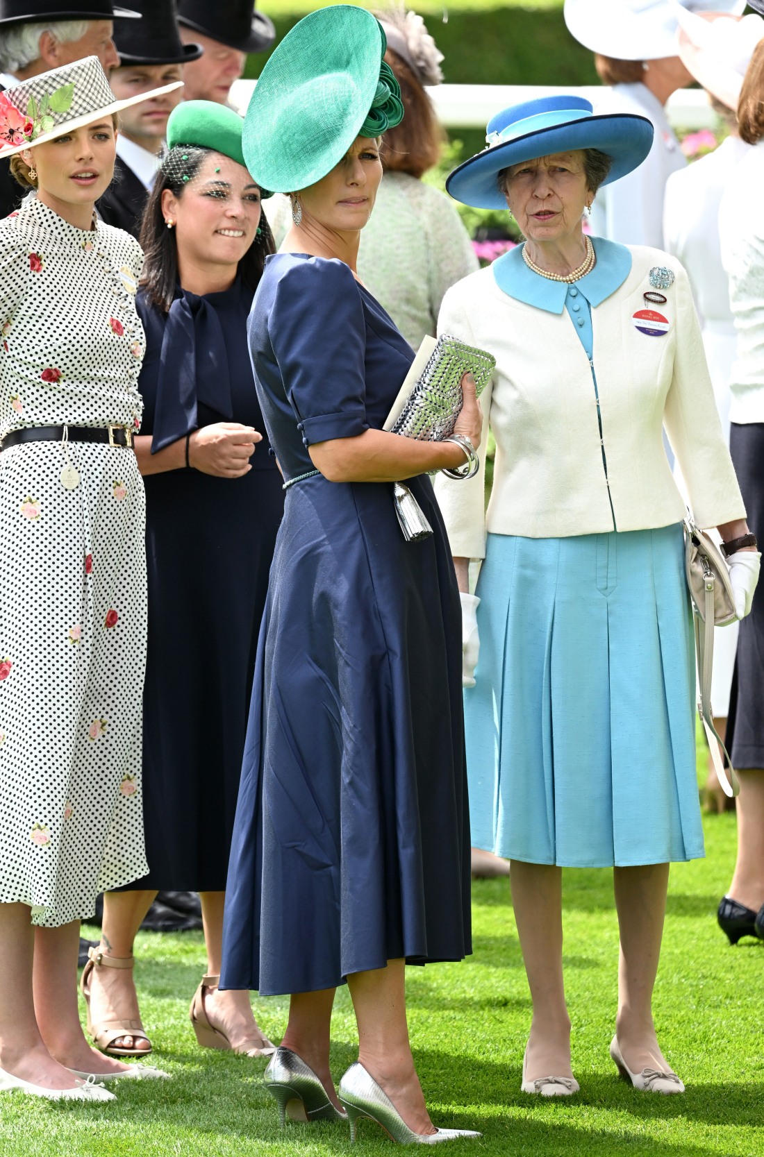 Fashion notes: Camilla wore a pink coat dress by Anna Valentine, one of her go-to designers. That makes it even more notable that Camilla wore Dior on Day 1. Camilla also wore a Philip Treacy hat, because Ascot is all about hats. Speaking of, Zara’s ensemble clashes – a navy dress with a bright green hat? And silver shoes? These people have no style. That dress is f–king hideous too. Meanwhile, Sophie wore a £3,450 silk dress from Suzannah, which is way too expensive for this frumpy frock. Anne looks like Anne – I bet she’s had that whole ensemble in her closet for thirty years, if not longer (you can tell).