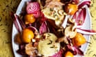 Chestnuts are here: dark, plump and shiny – and flat on one side from where they have snuggled together in their spiky green cases. Sweet chestnuts grew in the woods near my childhood home. I’d squirrel them away in my duffel-coat pockets on the walk home from school. We roasted them over the fire, the occasional one cracking like a whip, sending out a spray of nut shrapnel.