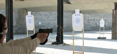 When I saw my first Glock as a young woman back in the late 80's, the 1911 style .45 auto was THE defensive pistol to have when things went south in a hurry. I still felt that way most days, so when one of the Indy gun bloggers first brought one of the smaller Glocks to the range I had to try it.