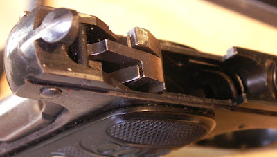The cost cutting didn’t stop there. Compare the internal workings of the SM-11 to the much higher quality Colt 1908 parts. (this is a Range firearm)