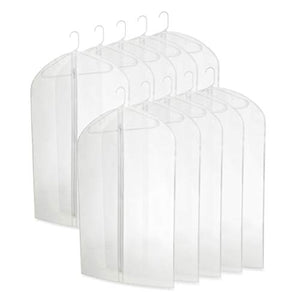 USE IN CLOSETS OR WHILE TRAVELING: Each bag completely covers clothing, making them great for travel by plane, bus, car or train. The vinyl material helps protect clothing from most environmental conditions, but is still thin enough for bags to be stacked or folded.